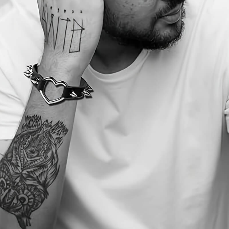 Crafted from durable materials for long-lasting wear, the adjustable fit ensures comfort while keeping a strong visual impact. Wear it alone as a statement piece or stack it with chains and cuffs for a layered punk style. This punk heart stud bracelet is a must-have accessory for anyone who loves fearless, expressive jewelry.