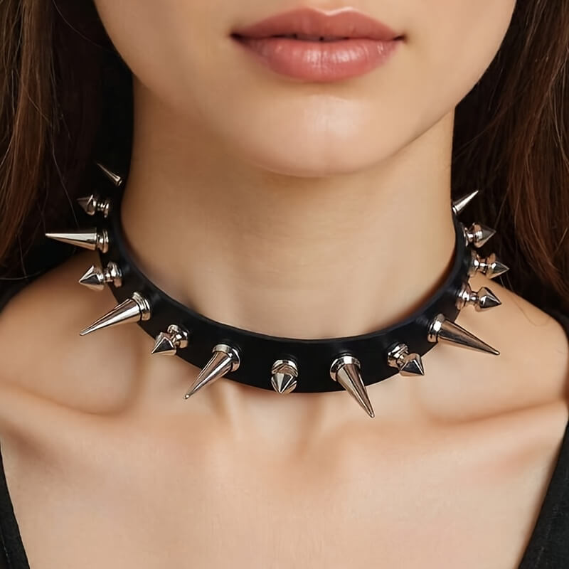 Built for both comfort and durability, this spike collar necklace offers an adjustable fit and a bold silhouette that pairs perfectly with leather jackets, chains, and dark streetwear. Ideal for concerts, festivals, cosplay, and edgy night-out looks, this choker instantly elevates any alternative outfit.